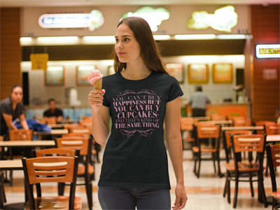 Money might not buy happiness, but Cupcakes are pretty damned good. That's good enough to bring me happiness. Now I'm sure you agree and so will everyone you know wearing this tee.